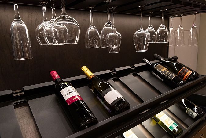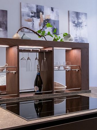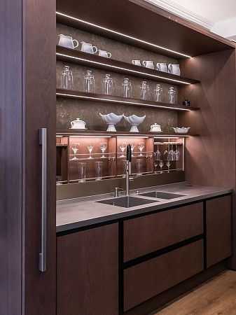 * Скрытая барная зона, которая бесшумно поднимается из столешницы