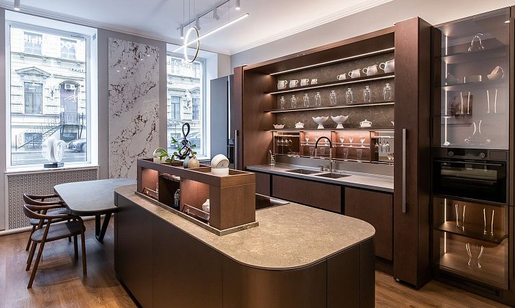 В салоне на Кронверкском проспекте, расположенном в исторической части Санкт-Петербурга, прошло полное обновление экспозиции. Лицом салона и его украшением стал новый образец кухни в стиле эклектика, объединивший в себе классические традиции и передовой hi-tech.
